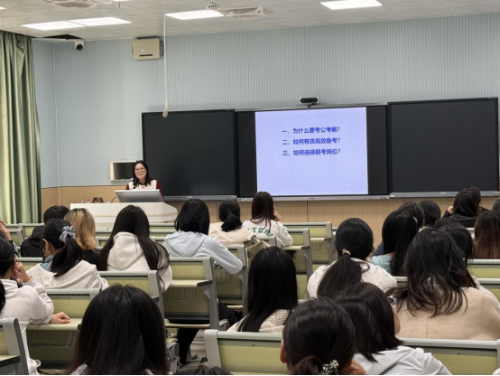 为切实帮助学生明晰公务员考试政策,科学规划备考路径,学院于11月14日下午在屏风校区9205教室举办“职面考公”公考全景通识专题讲座。本次讲座由中共桂林市委党校蒋玉凤副教授主讲,吸引了90余名有意向报考国省考及事业单位的学生参与。