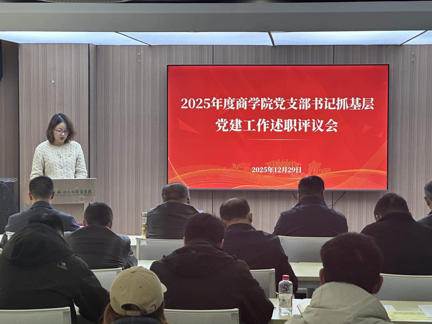 12月29日,学院在屏风校区7213召开2025年度党支部书记抓基层党建工作述职评议会议。学院领导班子、党委委员出席会议。学院各党支部书记,师生党员、群众代表参加会议。会议由学院党委书记王璐主持。