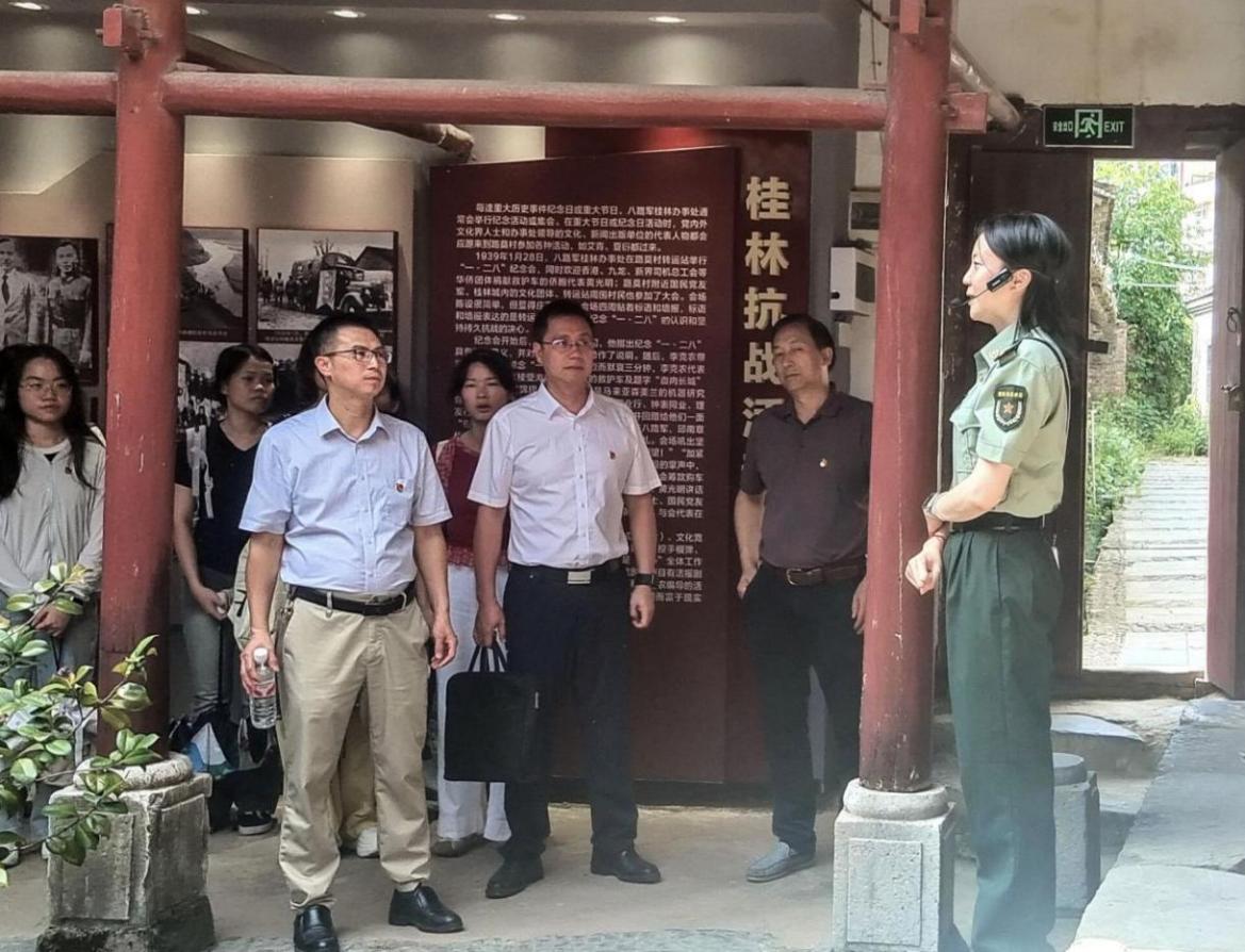 在社会实践方面,学院前往八路军桂林办事处灵川县路莫村军需物资转运站纪念馆开展“传承抗战精神,凝聚奋进力量”主题党日活动。教工第四党支部书记何里文现场讲授微党课;师生们在讲解员的引导下,参观了抗战救亡室、电台室等展馆,沉浸式地重温了革命先辈们的奋斗历程,深切感悟到他们不畏艰难险阻、坚守信仰、甘于奉献的崇高精神。