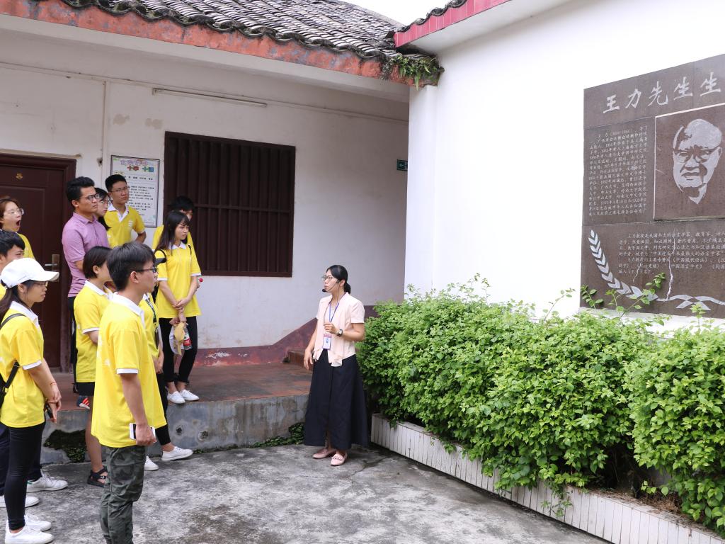 19日下午,团队成员来到了王力故居——王力先生的出生地和童年生活的地方。王力先生是中国现代语言学奠基人之一,一生致力于语言学的教学和研究工作,著作颇丰,贡献非凡,逝世后,将所有藏书无偿捐献给国家,继续发光发热,曾被南方日报评价为“中国百年来最卓越的语言学家”。