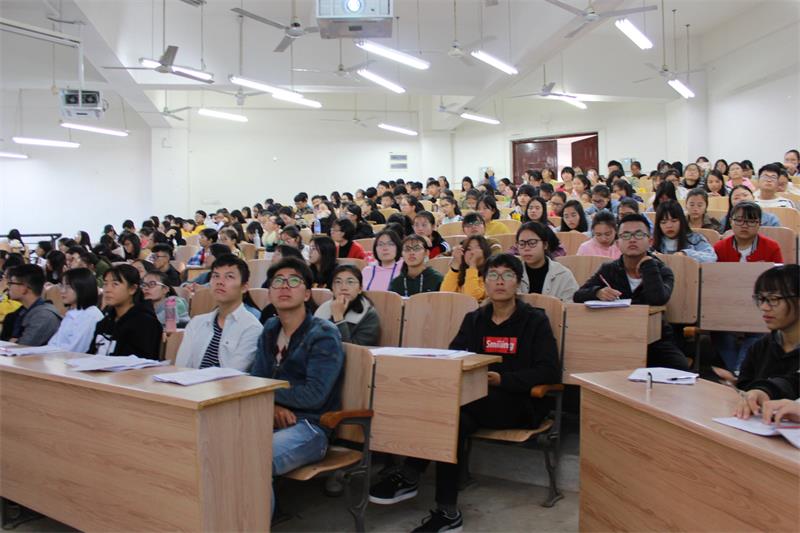 为帮助同学们提高英语四级的考前复习效率,我院特邀外国语学院朱敏老师于11月27日在雁山校区07119教室针对2018级新生进行考前冲刺辅导,250余名2018级新生参加了本次辅导讲座。