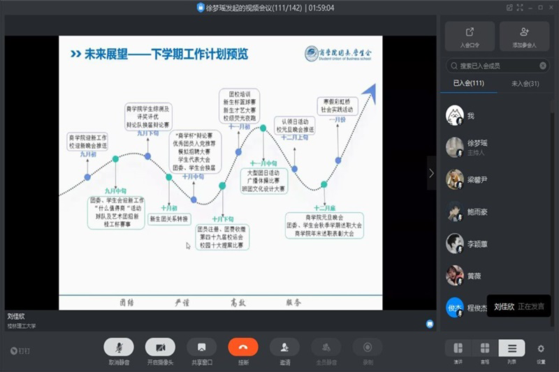 为更好地对我院团委、学生会过去一个学期的工作进行总结梳理,推进我院各项学生工作尽量提升,7月10日下午,我院举办2020年春季学期团委、学生会述职暨表彰大会,本次会议采取线上形式举行。学院团委书记杨剑老师、学生会指导老师覃泰树老师参加了本次大会。