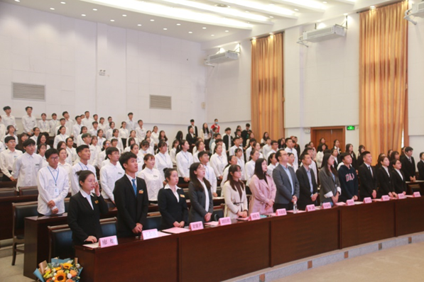 为进一步完善我院学生骨干队伍建设,增强学生骨干队伍的归属感和责任感,我院于10月17日上午在屏风校区图书馆报告厅举行2020年秋季学期团委、学生会换届大会。学院团委书记杨剑、团委副书记覃泰树、团委、学生会指导老师岑甜甜、雷丽钦、2020级辅导员刘筱丹和实习辅导员赵宇飞出席本次会议,伟德bv1946团委、学生会全体成员参与,会议由学生会张其主持。