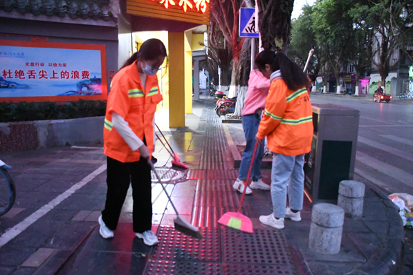 在伟德bv1946励合社学生骨干的有序组织下,45名志愿者凌晨六点带上清扫工具准时集合完毕。活动中志愿者们热情高涨,不畏辛苦,跟随环卫工人的步伐,按照他们的指导一点一点的打扫着街道的各个角落。每位志愿者都认真地做好自己负责的工作,经过一个多小时的清洁打扫劳动,志愿者们配合环卫工人完成了对建干路的街道两侧的清扫。同时通过七星环卫站负责人对垃圾分类知识及垃圾处理方式的讲解,志愿者们对环卫工人的工作又有了新的了解。