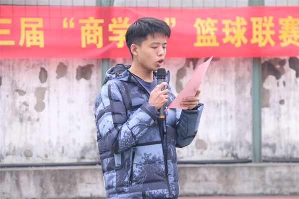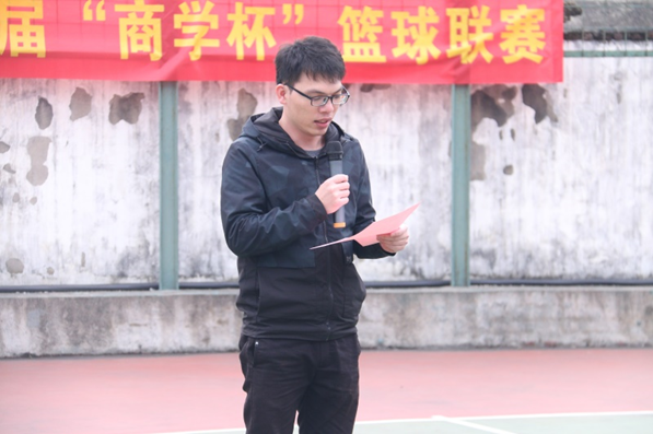 随后,我院2018级辅导员杨继理老师致开幕词,他强调“在运动中去绽放青春,释放活力”,“商学杯”篮球联赛旨在为同学们提供一个展示团队精神和提升综合素质的舞台,希望我院学子在赛场上尽情挥洒汗水时,赛出风格,赛出新学期商院学子的崭新风貌。最后,他宣布2021年“商学杯”篮球联赛正式开幕。