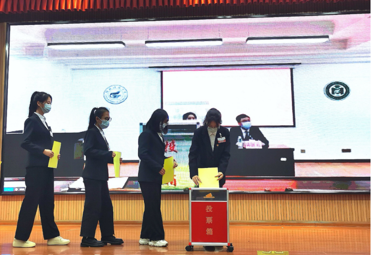 第二次全体会议(选举会议)中,全体代表审议并通过大会选举办法(草案)、大会总监票人、监票人、总计票人、计票人名单(草案),听取了第四届学生会主席团候选人和第四届学生会常任代表候选人简介。与会学生代表通过无记名投票、差额选举的方式,产生了伟德bv1946第四届学生会主席团成员3名和16名伟德bv1946第四届学生会常任代表。同时,大会向商院学子发出倡议,号召全体同学坚定理想信念,做有志气的青年;艰苦矢志奋斗,做有骨气的青年;练就过硬本领,做有底气的青年。在激昂的校歌声中,伟德bv1946第四次学生代表大会圆满落下帷幕。
