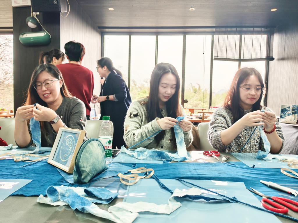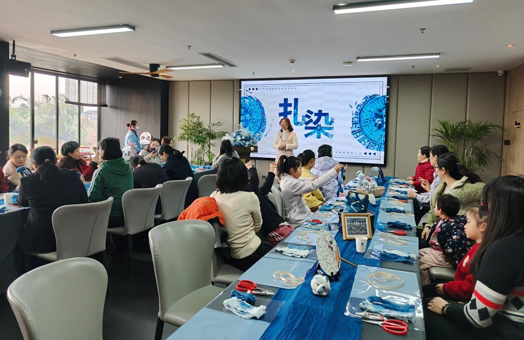 活动现场,非遗传承人以精湛的手工技艺,为女老师们带来了一场精彩的扎染艺术表演。在传承人的悉心指导下,女老师们纷纷动手实践,运用捻、搓、折等手法,创造出了一朵朵独具韵味的扎染玫瑰,收获了属于自己满满的成就感与喜悦感。
