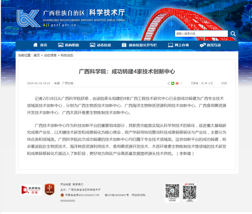 广西科学院:成功转建4家技术创新中心