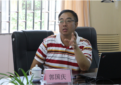 学院副院长蒙永亨教授就管理学院人文社会科学重点研究基地——现代企业管理研究中心的建设情况、进展等进行了汇报交流。郭教授对建设成果表示赞赏,提出了建设性建议,并对管理学院人文社会科学重点研究基地的未来发展寄予了殷切期望。