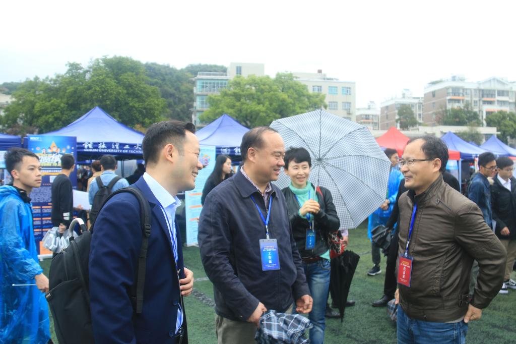 3月17日,2018届广西高校毕业生双选会暨伟德国际victor1946春季双选会在我校屏风校区运动场隆重举行。学院党委书记周章明、院长连漪、副院长蒙永亨、副院长李超玲、学工组长沈菲菲、院行政办主任李业正以及各年级辅导员冒雨亲临本次双选会现场,与用人单位招聘代表亲切沟通交流,了解用人单位对人才的需求情况以及当前就业形势。与此同时,我院领导还与2018届毕业生亲切交谈,悉心询问其就业意向、就业情况,并为其提供就业指导意见。