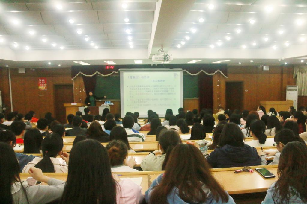 3月29日晚,为加深我院学生对中国传统文化精髓的理解,更深层次领悟“道”与管理之间的哲学关系,特邀请学院副院长江晓云副教授做客学校桂工讲坛,在屏风校区9401教室为学生主讲“向老子问道—《道德经》的管理启示”专题讲座。讲座由学院16级辅导员白宇航老师主持。