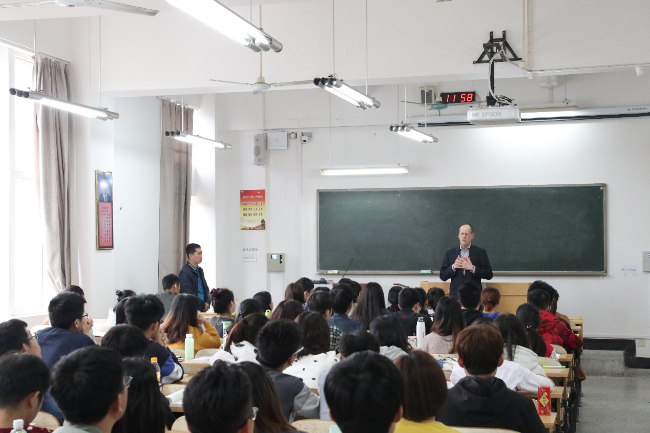 会议中,连院长首先对二位来宾的到访表示热烈欢迎,并简单介绍了我院近年来为提升市场营销2+2办学质量所做的努力,包括人才培养方案优化和师资引进等,Keith 副校长和Annie副部长也表示将从资源共享、师资交流等方面提供大力支持,共同促进项目的办学水平。随后双方就未来2+2合作办学的相关事宜交换了意见。之后,在市场营销专业教师和市场营销BCU2016级学生代表的见证下,Keith副校长代表BCU向我院捐赠了20册市场营销类教材,连院长代表我院向BCU授予了捐赠证书。最后,在专业教师的陪同下,Keith 副校长和Annie副部长来到课堂与市场营销BCU2016级学生开展了面对面的交流,Keith副校长鼓励学生们在校期间要学会利用学校的优质资源,努力学习,开拓视野,获得人生的成功。