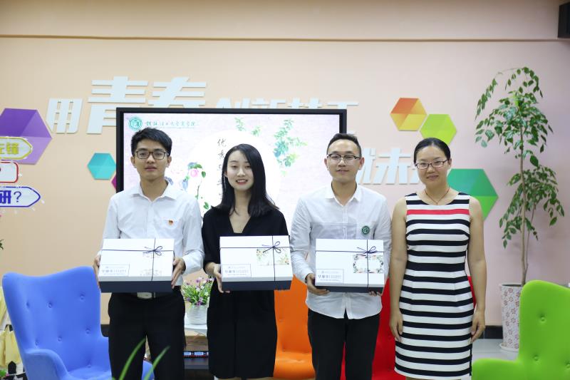 畅聊会在开场视频结束后正式开始。林绿辉、乔阳阳、席典鹏三位优秀毕业生分别就党员工作、考研学习、职场就业三个方面进行经验分享交流。首先,林绿辉同学强调大学期间要真诚做人、认真做事,当好党员干部,想到就做,抓住每一个为同学服务的机会;其次,乔阳阳同学分享了自己参加全球品牌营销策划大赛的经历,鼓励同学们敢于尝试,开阔视野。在考研方面她补充到,要做好准备、保持初心去坚定的迈过考研难关;接下来席典鹏同学不仅分享了自己大学学生会任职期间的经历,还介绍了职场、求职方面的细节问题,他指引同学们要明确自己的职业规划与追求,合理设定目标并为之全力以赴。互动交流环节,现场同学就自身疑惑向学长学姐们提出了问题,畅聊会现场气氛活跃,交流互动,畅所欲言。最后,沈菲菲老师为三位嘉宾送上毕业纪念品,由张瑞副书记对本次畅聊会作总结:他首先祝贺毕业生们在大学期间都取得了优异的成绩,同时也感谢他们为学院发展做出的贡献,希望毕业生们在走出社会之后,都能在自己所从事的行业中绽放光彩。
