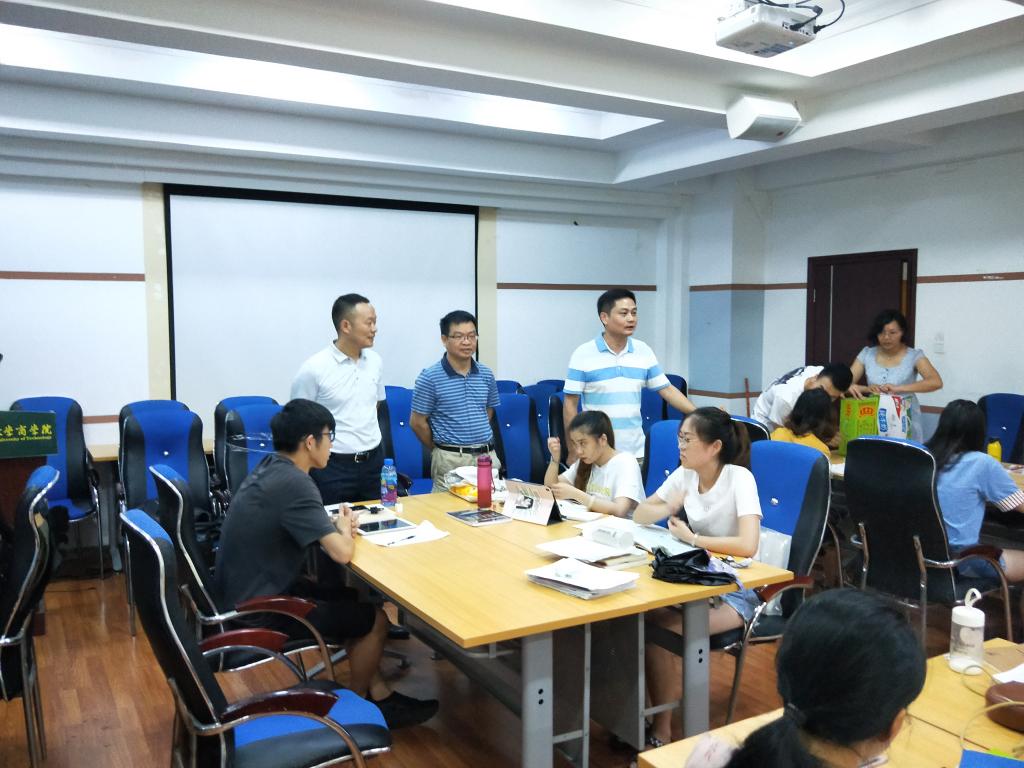 为了给考研学子加油鼓劲,增添考研自信,7月20日,学院党委书记周章明、副院长蒙永亨、副书记张瑞、学工组组长沈菲菲以及辅导员何邓睿一起走访了考研自习室,对备战考研的同学进行指导、慰问。