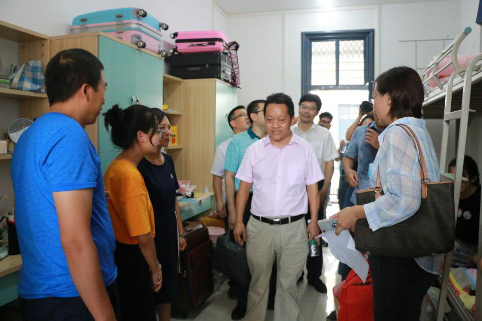 随后,每到一个新生寝室,领导、老师们都会亲切地同新生交谈,询问大家来自哪里、入学报到是否顺利、是否适应学校的环境、住得怎么样等。领导热情的话语,亲切的问候,让新生感受到了家的温暖,感受了领导和老师们对他们的关怀。新生们对领导和老师为大家营造的良好环境和氛围表示由衷的感谢,并表示要奋发努力,不辜负学院、社会和父母的厚望。