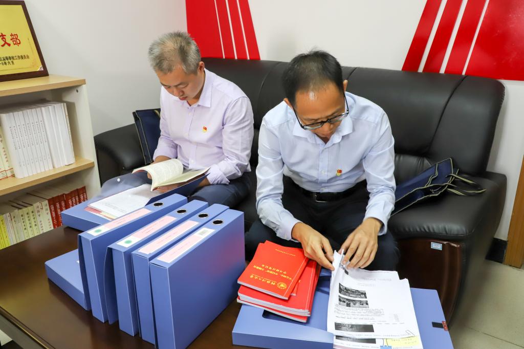 指导组成员对学院主题教育工作开展相关材料进行检查和指导