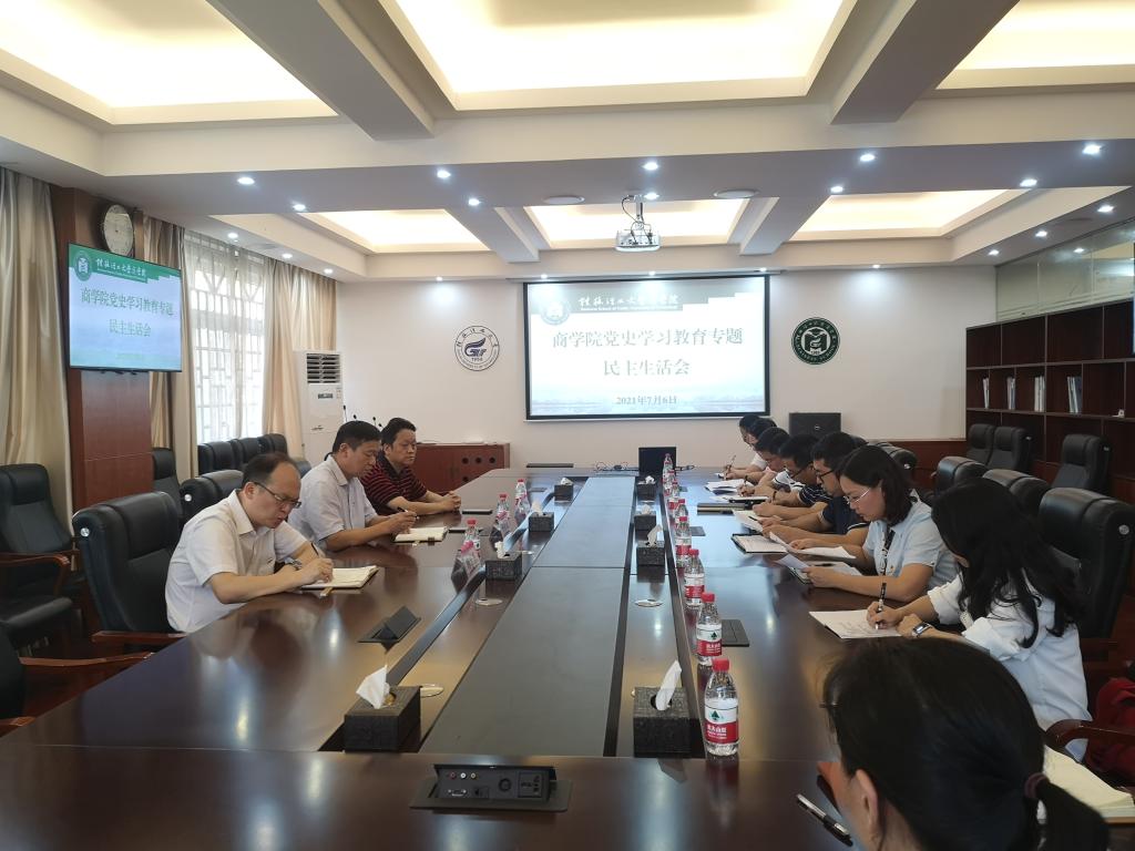 7月6日下午,学院在7206会议室召开学院党史学习教育专题民主生活会。学校党委常委、副书记齐俊斌,学校党委常委、总会计师曾繁荣,学校党委常委、组织部部长唐壮东到会指导,学院党政领导班子、党委委员、院长助理参加了会议。