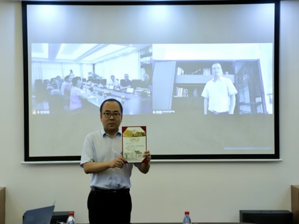 学院党委副书记、副院长(主持工作)李雷在线向何奇颁发捐赠证书,何奇向曾繁荣、学院党政班子以及参与“何奇校友奖学金”设立的工作人员表示真诚的感谢。