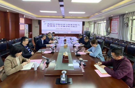 在广西大学工商管理学院、广西民族大学管理学院、广西财经学院工商管理学院和经济与贸易学院、南宁师范大学经济与管理学院,朱帮助院长、马璐院长、赵锋院长、王业斌院长、纪明书记和韦海鸣院长等领导热情接待了李雷一行。座谈会上,李雷受学院党委书记白永生委托,首先介绍了学院党建工作基本情况,以及学院党委着力在夯基垒台、品牌培育、形象塑造、能力提升四个方面下大功夫,塑造学院发展新优势新动能新赛道的工作思路和重要举措,听取了与会人员的意见和建议。随后,李雷一行围绕博士点申报建设、学科建设、科研平台建设、优质专业和优质课程建设、课程思政、教育教学改革、产教融合、校友工作、团委学生工作等,与兄弟学院同仁进行了深入交流,并参观了兄弟学院的党建工作阵地、科研平台、实验室、教师工作间、EMBA、MBA授课室、研究生工作间、报告厅等。