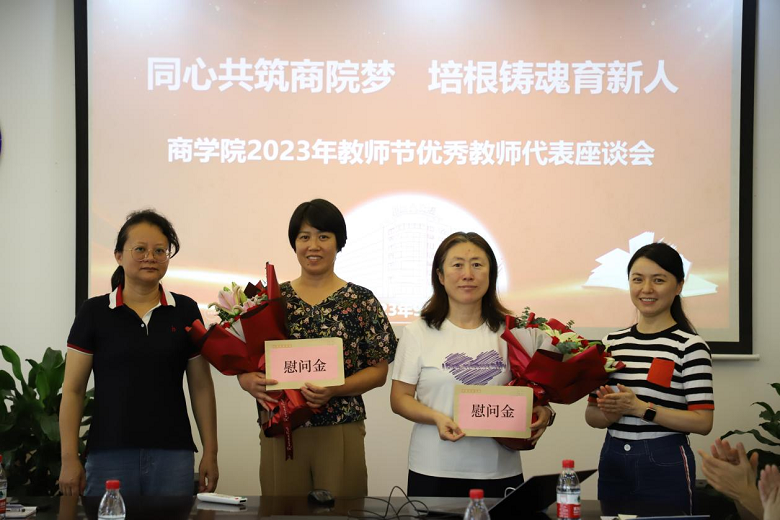 同心共筑商院梦,培根铸魂育新人。在第39个教师节来临之际,9月8日下午,学院在7206会议室举行优秀教师代表座谈会。学院领导、院长助理、优秀教师代表参加座谈会。会议由学院党委副书记沈菲菲主持。