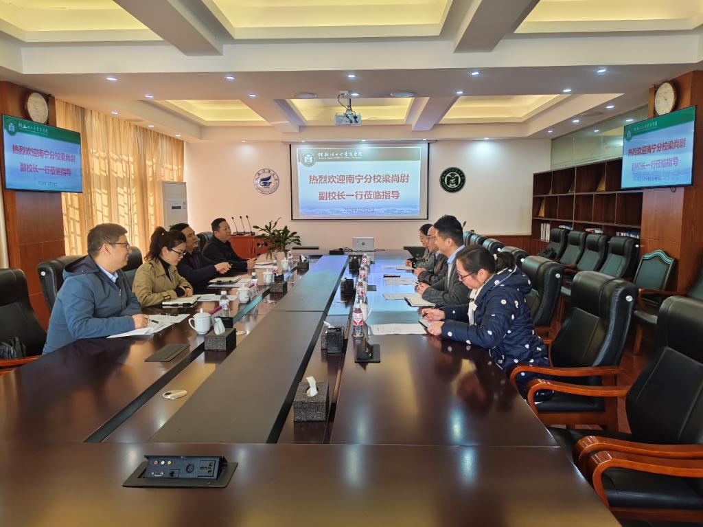 12月19日上午,南宁分校梁尚尉副校长、经济与管理学院党委书记吕广文一行来我院调研交流。学院党委副书记、院长李雷,副院长廖帅,学工办、党政办负责人参加座谈会。会议由廖帅主持。
