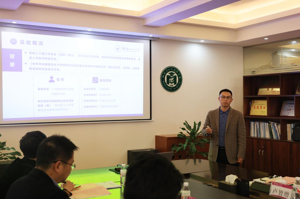 1月5日下午,为了高质量推进广西科技智库“广西资源环境科技创新与绿色低碳发展研究智库”、广西高校人文社科重点研究基地(培育)“广西碳管理与绿色发展研究院”以及桂林市科技计划项目“广西资源环境大数据与智能决策技术重点实验室培育建设”的各方面建设工作,我院在7206会议室开了科研平台高质量建设研讨会。伟德国际victor1946党委常委、副校长黎贞崇出席会议并致辞。中国石油大学(北京)经济管理学院院长、中国高等教育学会碳中和与清洁能源教育专业委员会副秘书长王建良,北京知链科技有限公司总裁刘全宝,西北工业大学管理学院长聘副教授、新时代企业高质量发展研究中心副主任杨倩,广西师范大学社会科学研究处处长肖富群,桂林电子科技大学马克思主义学院院长邓国峰,以及学院班子成员、各教研室负责人、科技智库和人文基地骨干教师参加了本次研讨会。会议由学校科学技术研究院副院长、社会科学办公室主任张鲜艳主持。