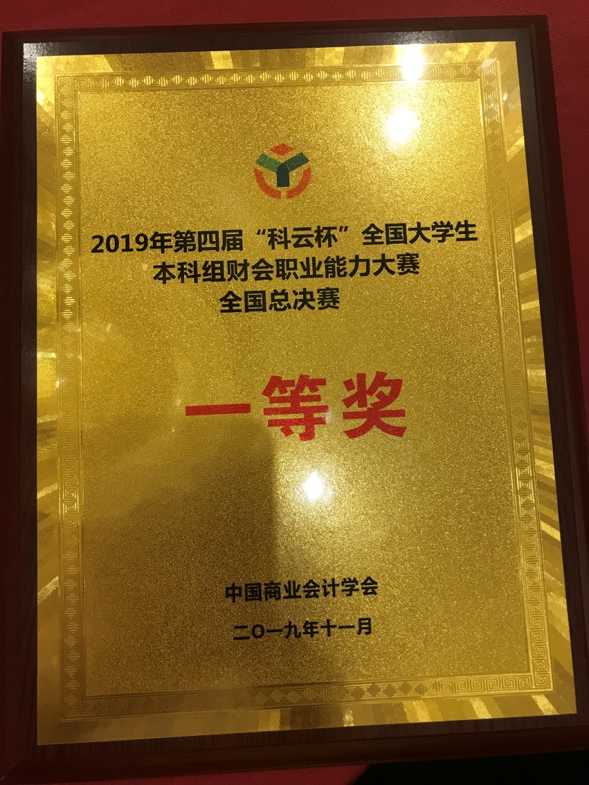 2019年11月24日,由中国商业会计学会主办、厦门科云信息科技有限公司承办的2019年第四届“科云杯”全国大学生本科组财会职业能力大赛全国总决赛在厦门集美大学落下帷幕。我院会计系杨礼洪、蒋红芸老师带领的会计17级学生韦丹阳、徐梦怡、叶惠佳和黄敏敏四位同学组成的队伍在此次全国总决赛中取得了优异成绩,获得了2019年第四届“科云杯”全国大学生本科组财会职业能力大赛全国总决赛一等奖。