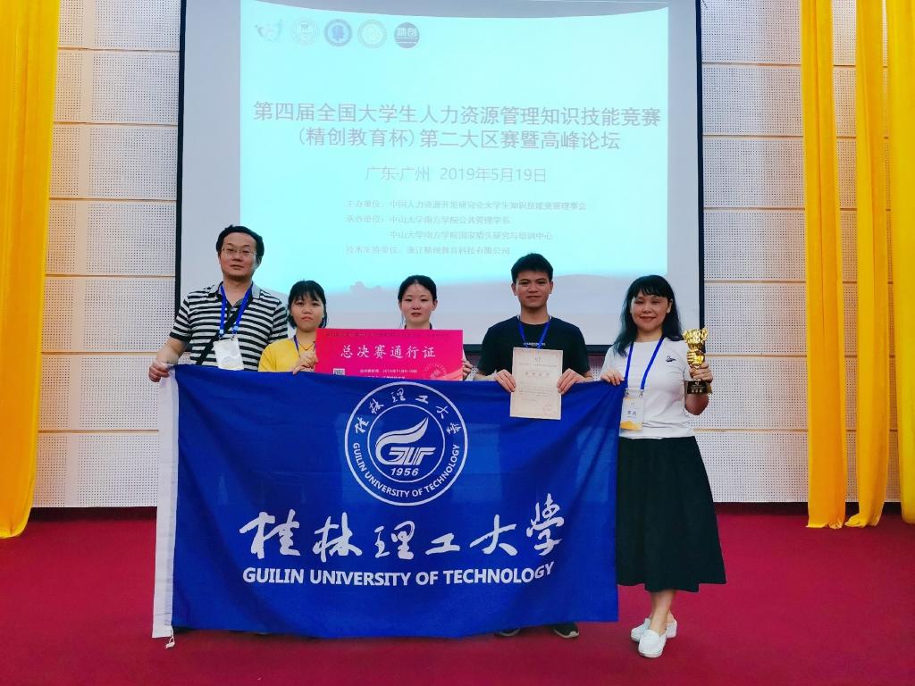 5月18日至19日,第四届“精创教育杯”全国大学生人力资源管理知识技能竞赛第二大区赛在中山大学南方学院举行,来自广东、广西、湖南、海南四个省45个学校代表队参加了此次竞赛。我院2017级人力资源管理专业农聪、谢雍布、王苗和彭婕4位同学代表我校参加比赛,经过近十个小时的激烈对抗赛,他们以总分第一的成绩荣获第二赛区特等奖,并取得总决赛通行证。