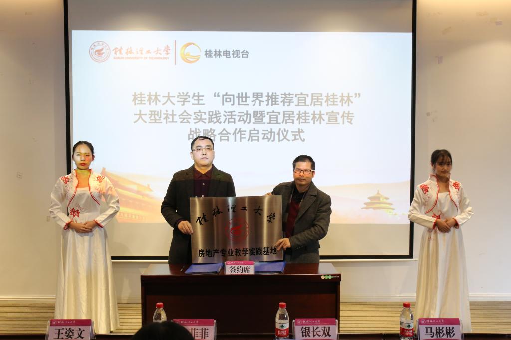 为了更好的将活动落到实处,实现长期合作,桂林电视台与伟德bv1946进行了战略合作签约仪式,伟德国际victor1946宜佳大学生创业工作室负责人谢丽莎与桂林电视台“房很多”平台达成了共同宣传的协议。本次活动以宜居桂林公益宣传的形式,实现产学融合和党建+“双创”,从而推进大学生社会实践活动的开展,最终实现向世界宣传宜居桂林的愿景!