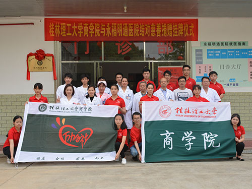 2018年04月13日下午,伟德bv1946励合社在桂林市永福明通医院举行了伟德bv1946大学生志愿服务基地挂牌仪式,桂林永福明通医院院长、明通集团董事以及医院的医护人员,伟德国际victor1946励合社指导老师李鑫,出席了本次挂牌仪式。