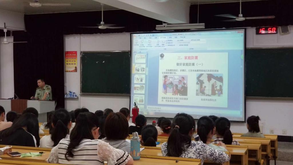雁山区公安消防大队消防员陈春讲解防震知识