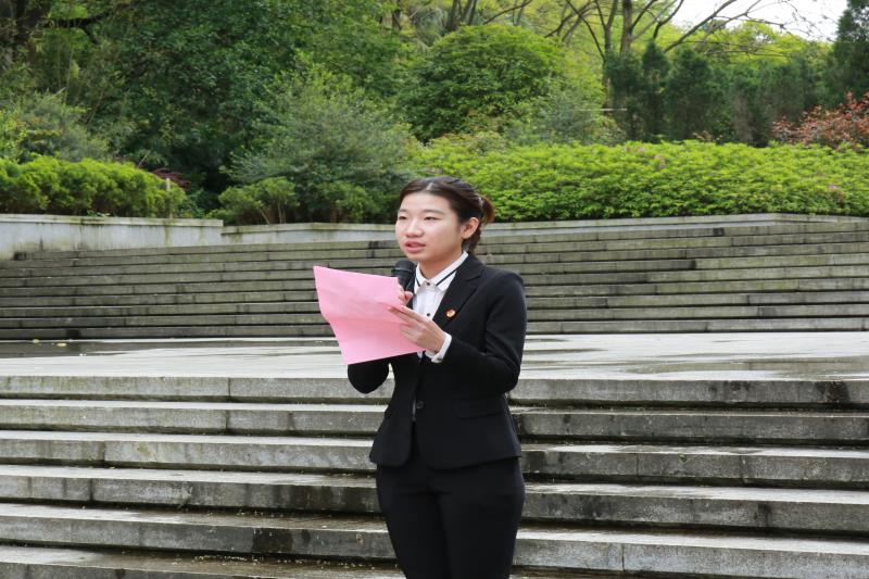 活动伊始,由校团委学生副书记谭明灿讲解本次活动的背景与目的,并宣布烈士祭扫仪式开始。奏唱国歌后,材料科学与工程学院团委书记赵思聪老师介绍了烈士英雄事迹,意在让同学们铭记历史,铭记英雄精神。接着,全员默哀一分钟,在庄严肃穆的仪式中接受精神洗礼。随后,伟德bv1946学生骨干代表王昕怡发言,她倡议当代大学生应当自觉学习革命英雄事迹,继承和弘扬爱国主义精神,为实现中华民族伟大复兴的中国梦而努力奋斗。随后,土木与建筑工程学院团委书记姚慧老师带领全体学生骨干重温入团誓词。最后,我校团委副书记莫媛老师进行讲话,她对在场的所有学生骨干指出了三点希望:一是要缅怀革命先烈,传承红色精神;二是要牢记历史使命,弘扬爱国精神;三是要胸怀远大理想,同心共筑中国梦。至此,本次清明祭扫活动圆满结束。
