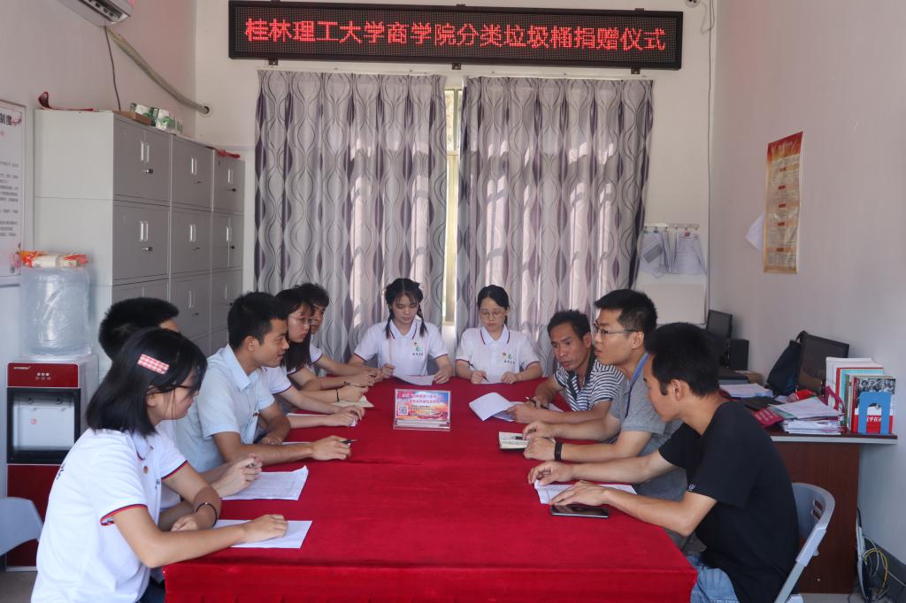 通过实地走访与调研发现东阳村目前的垃圾处理效果还不错,但了解后发现当地还未实行分类回收垃圾的做法,村民也缺乏意识。在与村委会取得联系后,就我们调研所得的情况与其进行反应与交流,提出可以实行分类回收垃圾的想法,团队成员在交流会上提出当前切合实际且能快速取得一定成效的垃圾分类解决办法:树立垃圾分类的观念、改造或增设垃圾分类回收的设施、改善垃圾储运形式、实行家庭短期收集,定期分时段分类回收等。在指导老师覃泰树的建议下,桂有佳园团队自发为东阳村捐赠分类垃圾桶,希望我们的公益捐赠可以让东阳村变成一个美丽干净的家园!