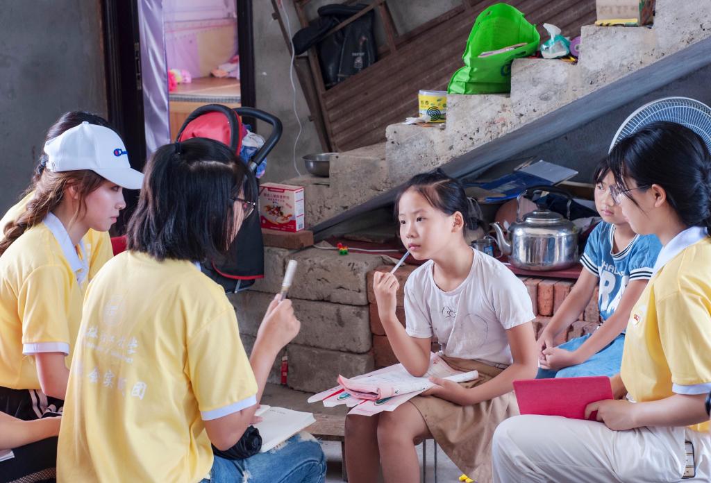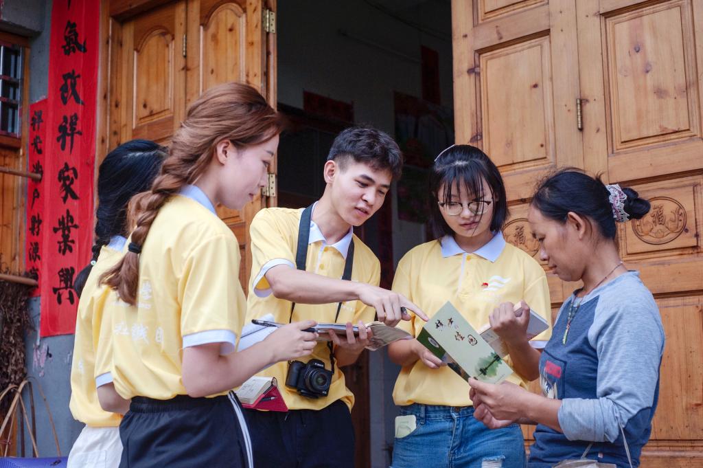 团队成员为东阳村村民进行环保知识科普