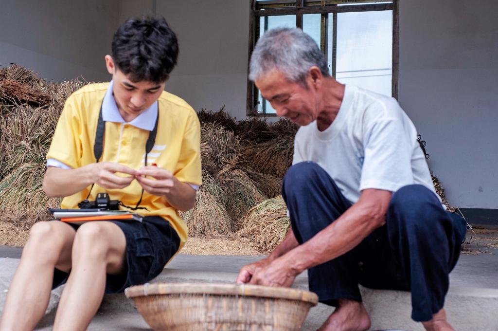 团队成员以宣传手册的形式向村民科普垃圾分类知识