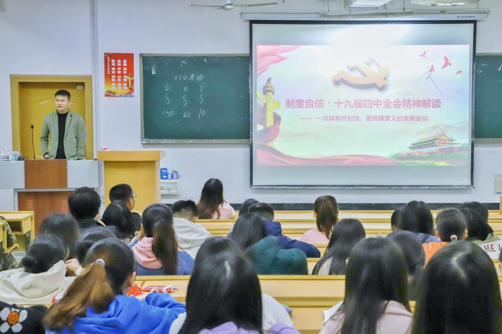 为了深入学习贯彻中共十九届四中全会精神,12月15日,按照学校的统一部署,我院以大学生成长成才教育课为载体,开展全院学生“同上一堂课”活动,深入学习贯彻中共十九届四中全会精神。