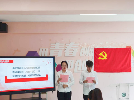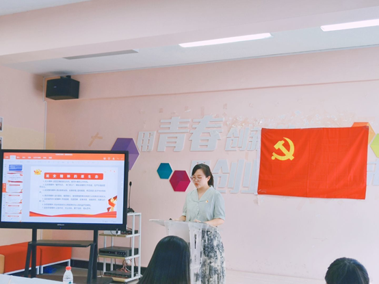 会上,支部书记梁译匀老师首先以《弘扬延安精神,凝聚精神动力》为主题,从“什么是延安精神”“准确把握延安精神的现实意义”“如何弘扬延安精神”三个方面开展党史学习教育专题党课,号召支部同志积极从延安精神中汲取信仰力量,将红色精神发扬光大。活动通过学习《论中国共产党历史》节选内容,引导支部同志在学思践悟中坚定理想信念,在奋发有为中践行初心使命。通过诵读经典《青春中国》、观看《中国共产党百年述职报告》视频、重温入党誓词等多样化形式,支部同志从党的奋斗历史中汲取前进力量,提高党史学习能力,增强国家自豪感和民族自信心,厚植爱国主义情怀。
