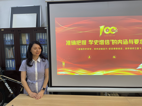 罗老师结合教工第二党支部的特色党建实践活动,从“学史增信,增强对马克思主义的信仰”、“学史增信,增强对中国共产党的信赖”、“学史增信,增强对中国特色社会主义的信念”、“学史增信,增强对中华民族伟大复兴的信心”等四个方面,深入阐述了如何从本职工作出发,把党史学习教育的成果真正落到实处,为广大师生服务、为人民群众办实事。