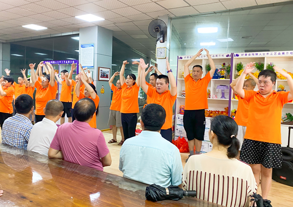 随后,党员教师们为这里的特殊人士送上了水果和牛奶,并通过购买手工品的方式来支持和鼓励他们,为特殊人群办实事,献爱心。在场的特殊人士也通过表演节目的方式表达了对到来老师们的感谢。
