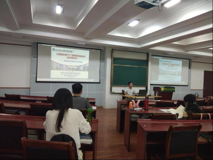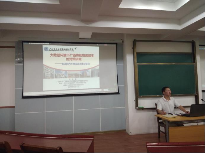 王教授的讲座风格风趣幽默,讲座内容切实新颖,在场全体师生认真聆听了王教授关于“大数据环境下广西降低物流成本的对策研究”,深受启发。会后,王教授代表“广西生态工程职业技术学院”向我院MPAcc学生抛出了橄榄枝,极大地引起了学生们的求职热情。