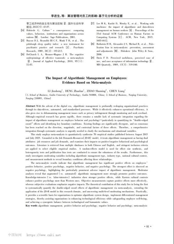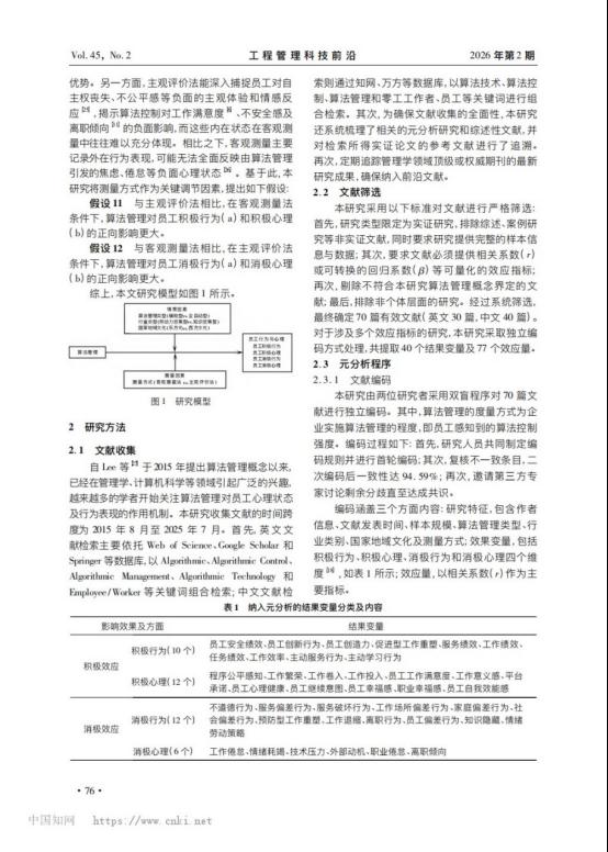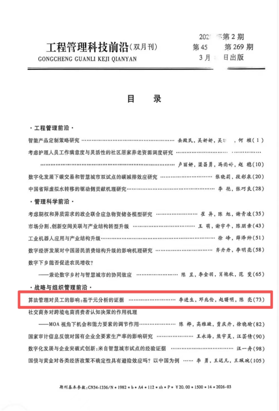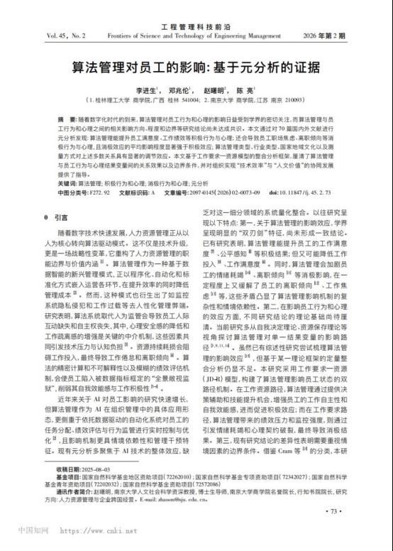 格式引文:李进生,邓兆伦,赵曙明,等.算法管理对员工的影响:基于元分析的证据[J].工程管理科技前沿,2026,45(02):73-81.