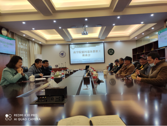 12月24日下午学院在7206会议室召开了退休教职工座谈会,学院党委副书记沈菲菲、副院长蒙永亨和工会副主席程晓兰参加了本次座谈会,会议由党委副书记沈菲菲主持。