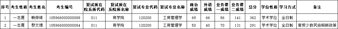工商管理学专业(代码:120200)2026年一志愿考生复试名单公示