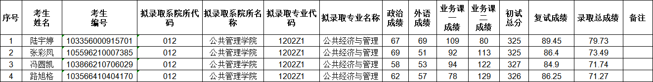 公共经济与管理专业2026年硕士研究生拟录取名单(调剂考生)
