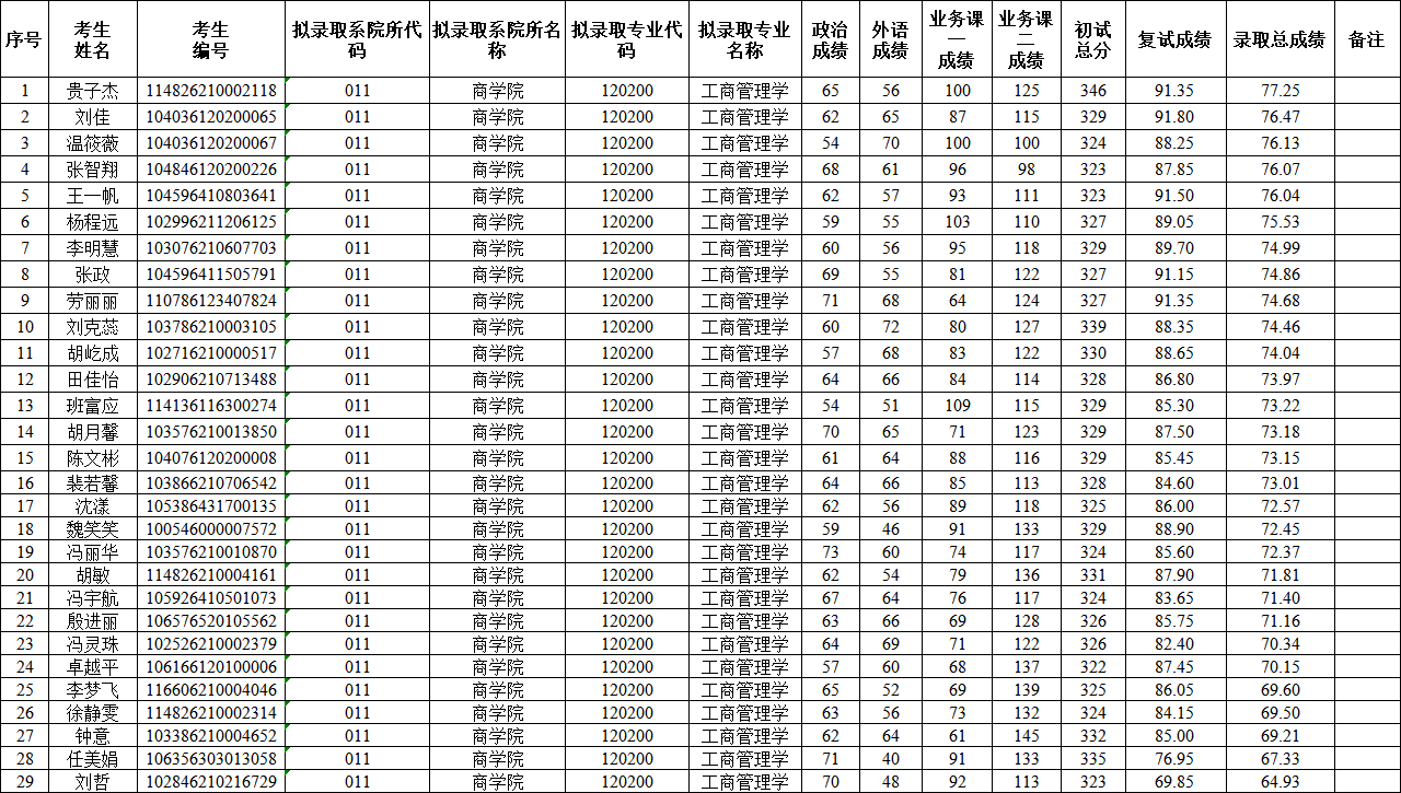 工商管理学专业2026年硕士研究生拟录取名单(调剂考生)