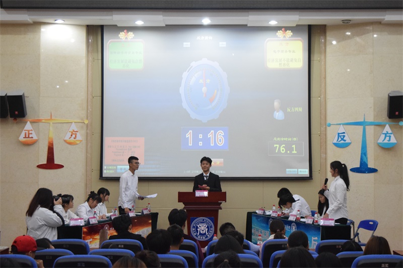 为提高学生的思辨能力,我院举行了2019级“新生杯”商学辩论赛。经过激烈的角逐,国际经济与贸易专业代表队、电子商务专业代表队脱颖而出,并于10月26日下午在雁山校区萃华楼报告厅进行决赛。我院18级辅导员胡嘉议、...