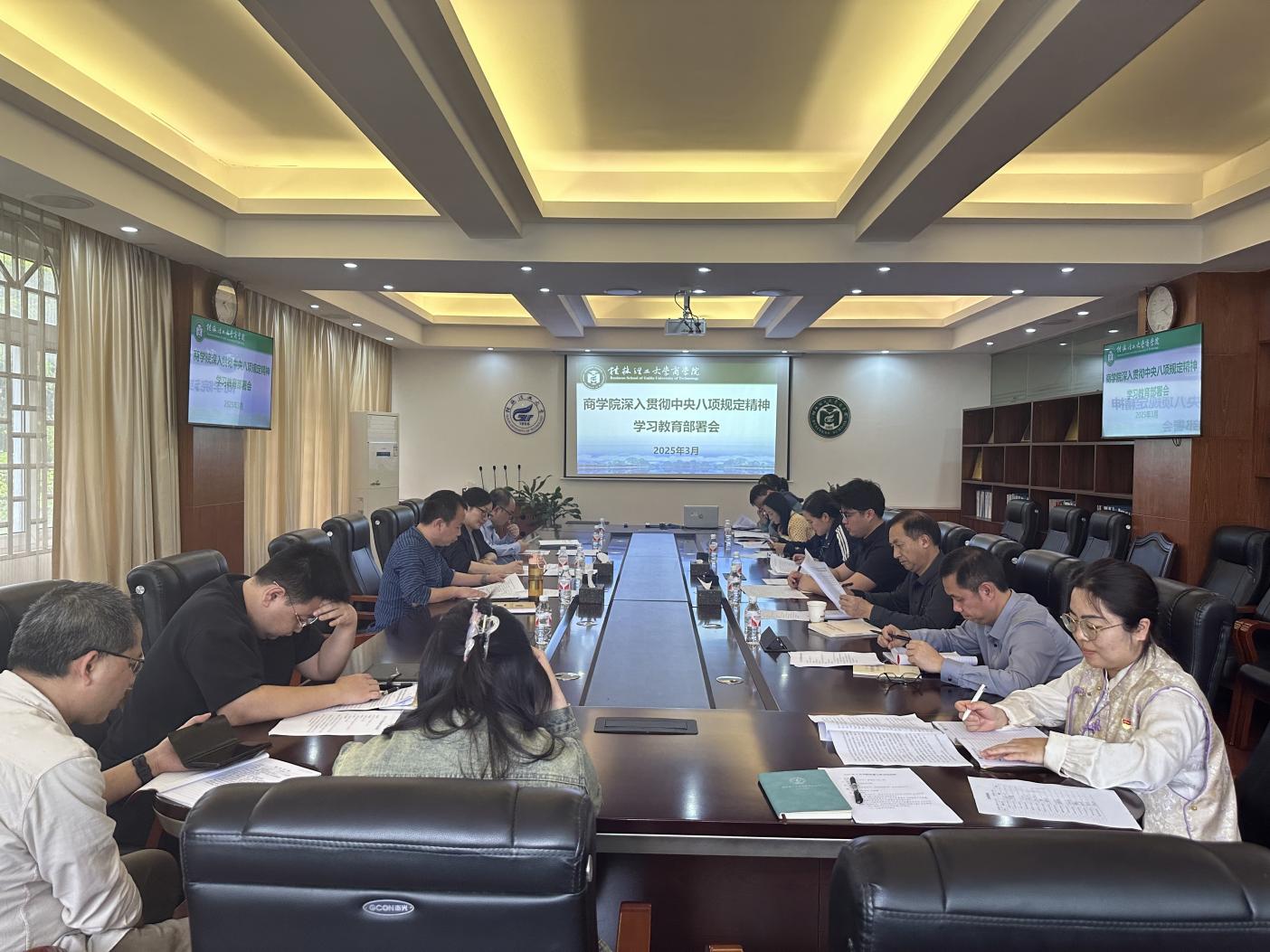 3月27日下午,学院在屏风校区7206会议室召开深入贯彻中央八项规定精神学习教育部署会,深入贯彻落实党中央、自治区党委和学校党委关于开展学习教育的各项部署要求,部署学院学习教育工作。学院领导班子成员、党委委员和各党支部书记参加会议。会议由学院党委书记白凌婷主持。会议指出,开展深入贯彻中央八项规定精神学习教育既是巩固深化主题教育和党纪学习教育成果、纵深推进全面从严治党的重要举措,也是密切党群干群关系、巩...