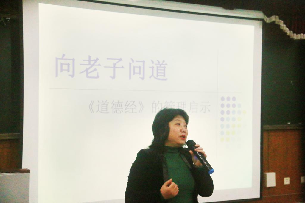 3月29日晚,为加深我院学生对中国传统文化精髓的理解,更深层次领悟“道”与管理之间的哲学关系,特邀请学院副院长江晓云副教授做客学校桂工讲坛,在屏风校区9401教室为学生主讲“向老子问道—《道德经》的管理启示”...