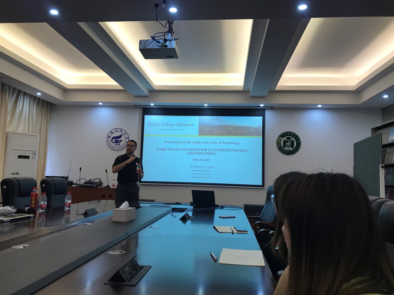 2019年5月20日上午,美国阿巴拉契亚州立大学沃克伟德bv1946Steven Creek教授一行到我院进行访问交流,本次交流活动由市场营销穆慧敏老师全程进行接待并担任翻译工作。 Steven Creek 教授做了主题为“Dark Traits and Beh...
