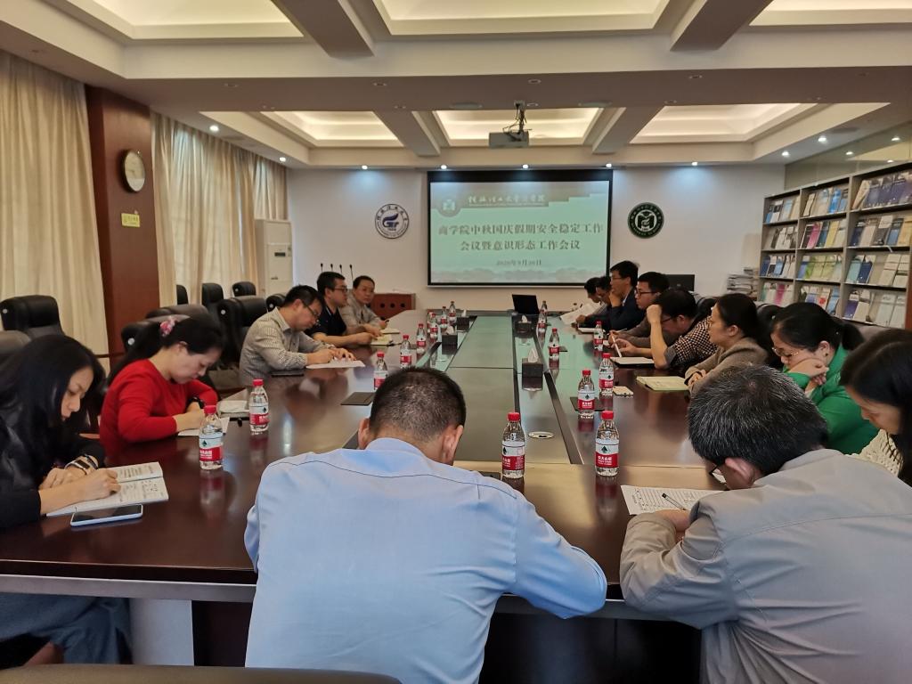 为了认真贯彻落实学校关于“中秋国庆假期安全稳定工作和意识形态”工作要求,强化教工对安全意识形态防范。我院9月30日下午4:30在7206会议室召开会议,学院领导班子、党支部书记和各科室主任参加了会议,会议由党委书...